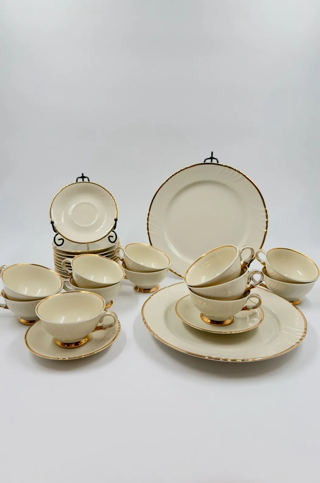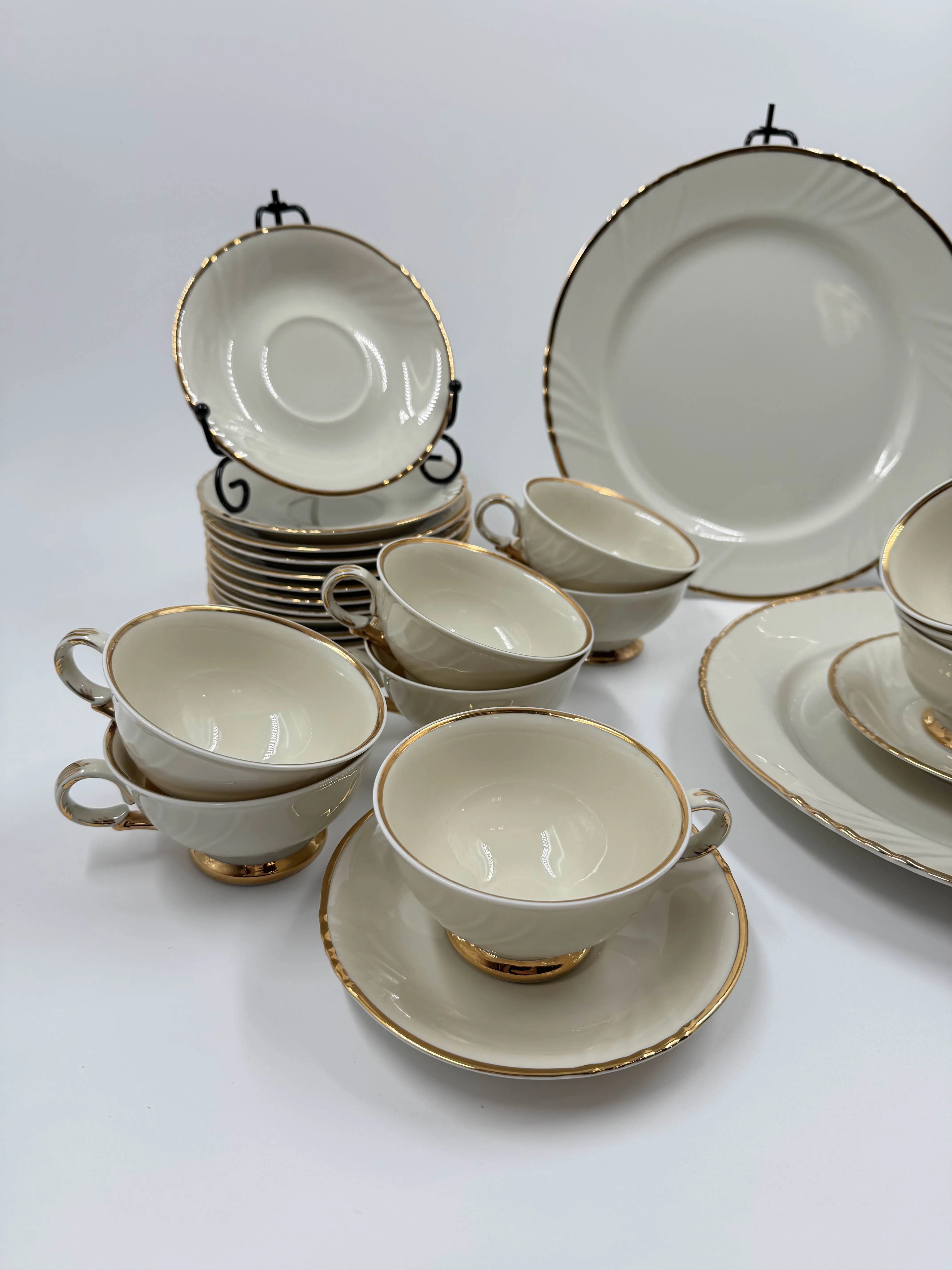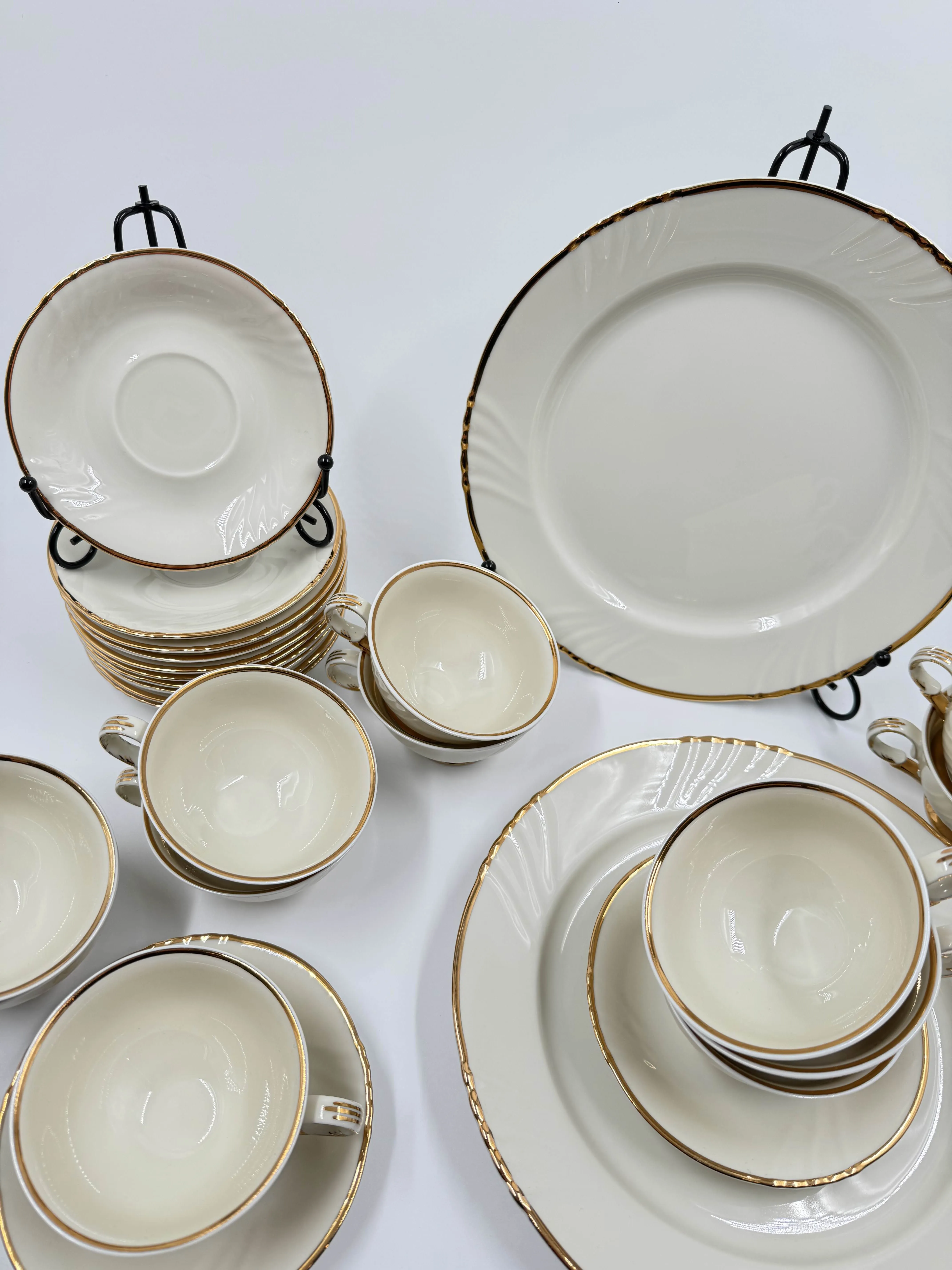 12 kuppia, 12 aluslautasta, 2 ruokalautasta.