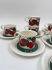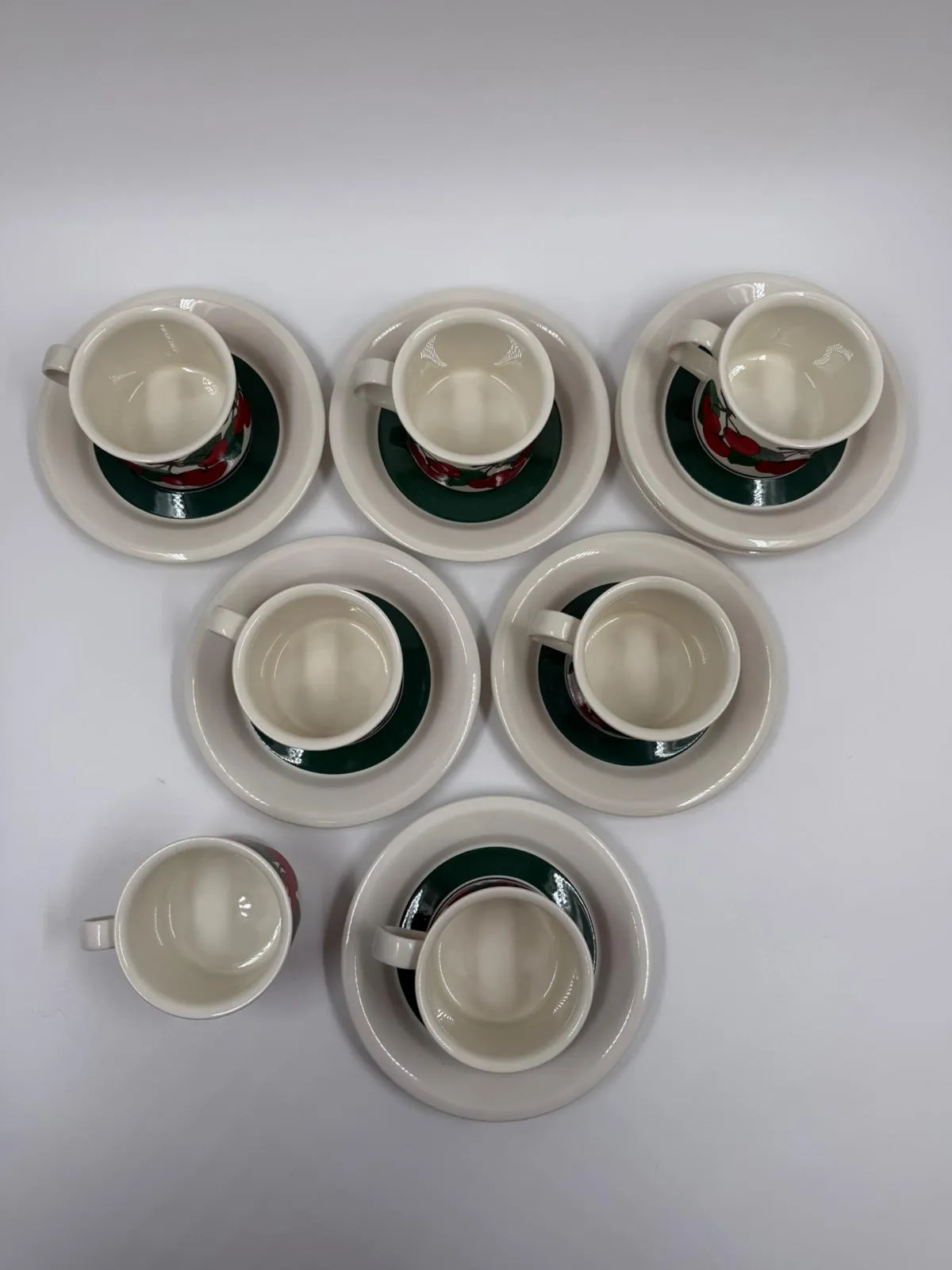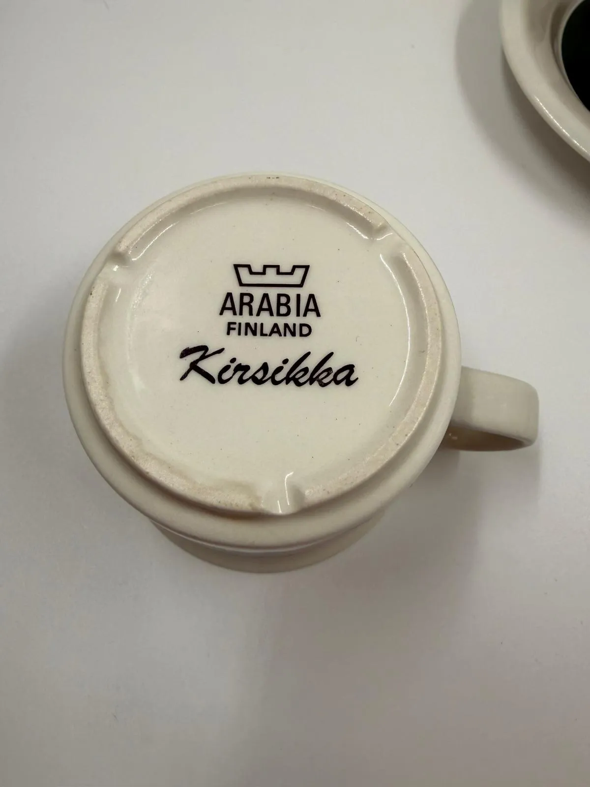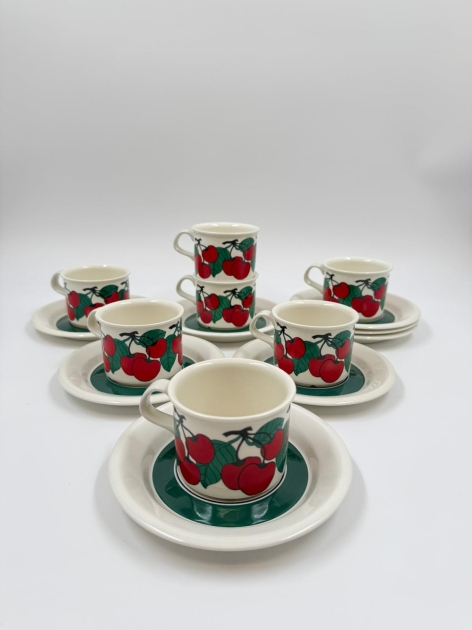 Kupin korkeus 6 cm, halkaisija 8 cm. Tassin halkaisija 15,3 cm.