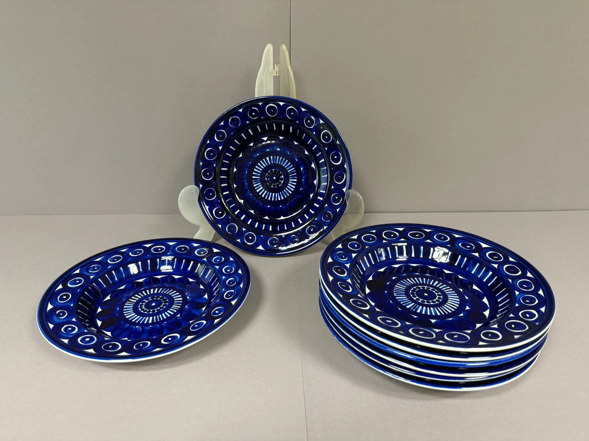 Kaikki lautaset ehjiä, vähäistä käytön jälkeä.