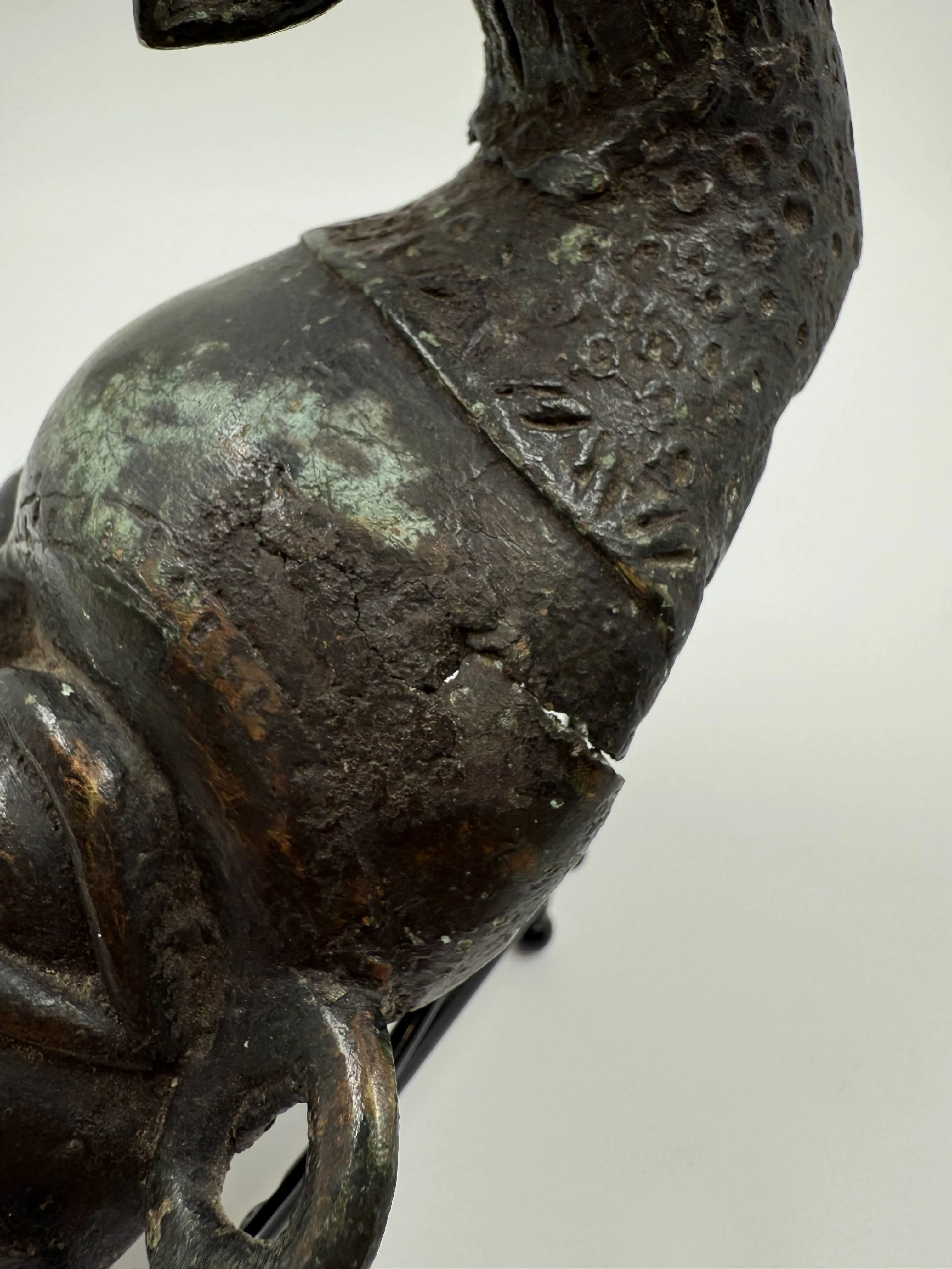 Patinoitunut, halkeamia.
