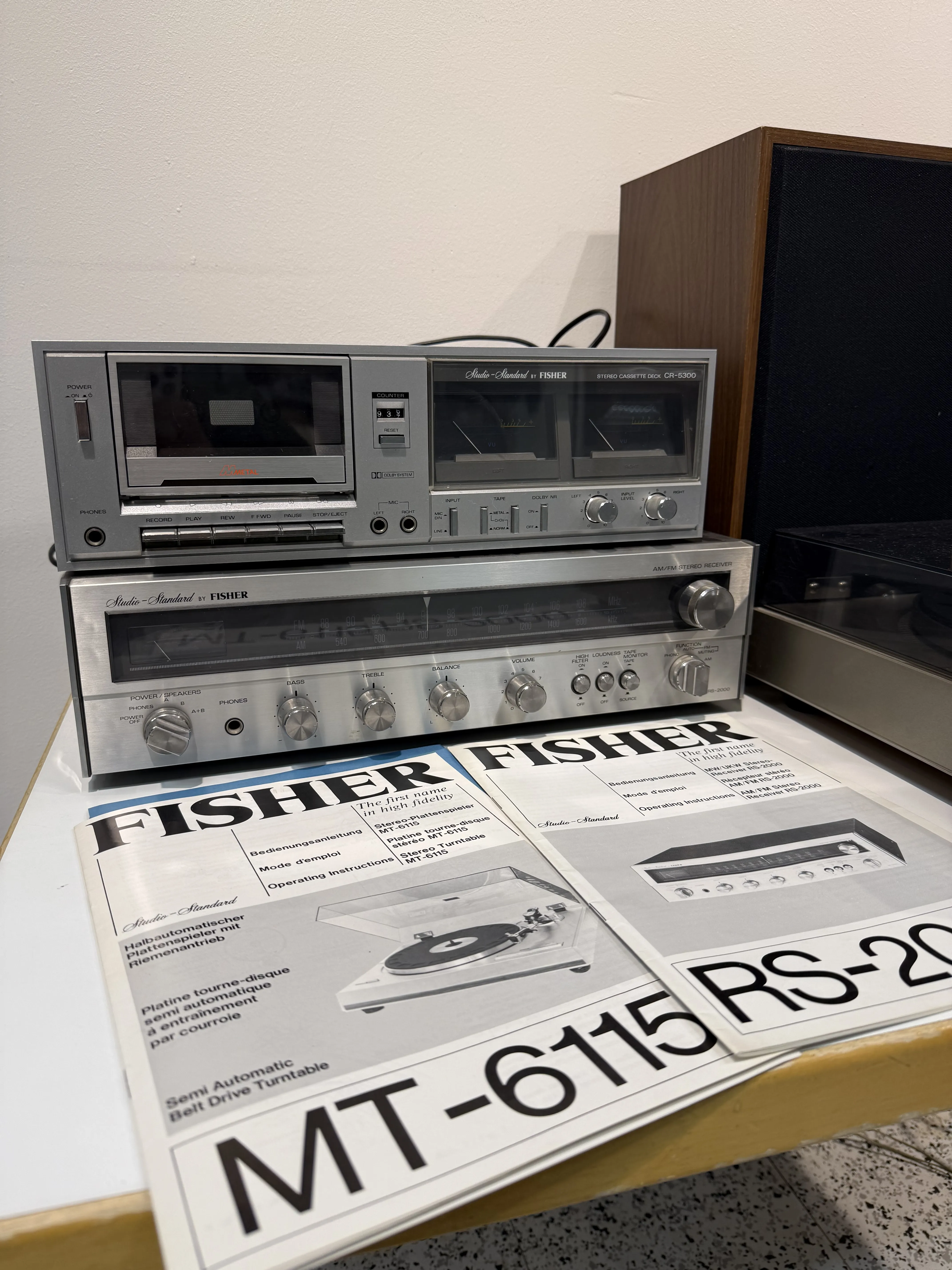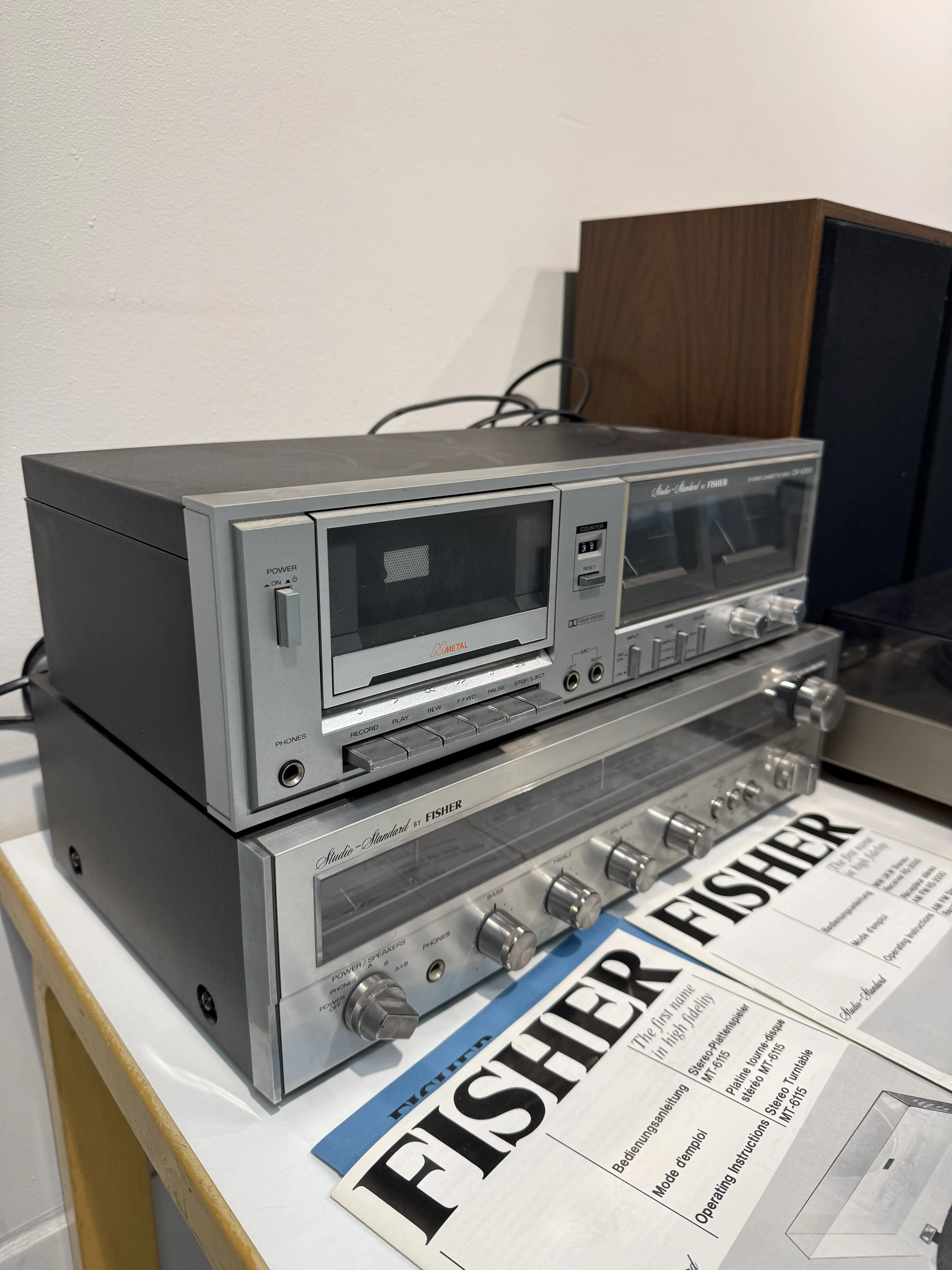 92. Fisher levysoitin, kasettinauhuri, vahvistin + kaiuttimet