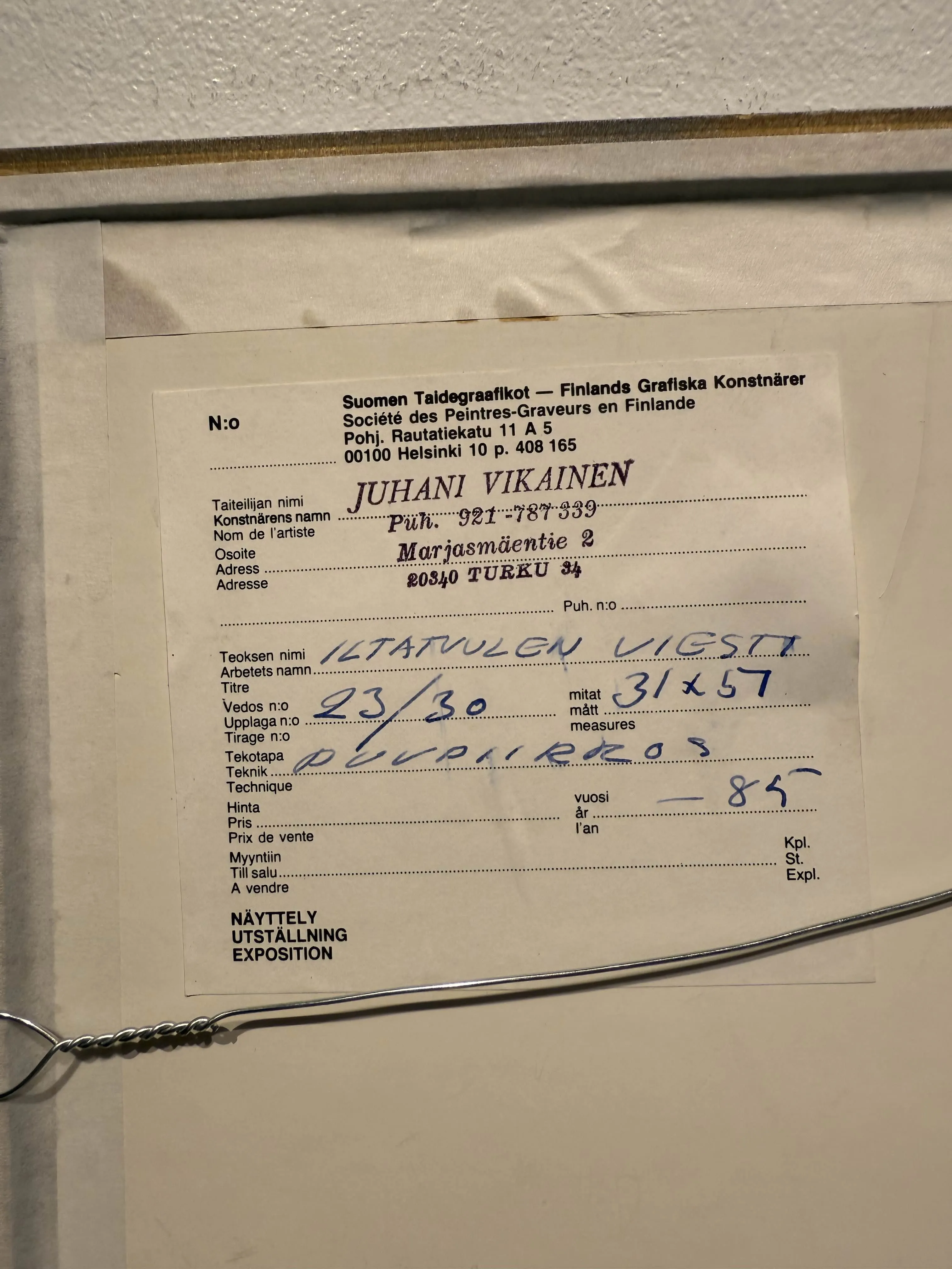 Teoksen koko 31 cm x 57 cm.