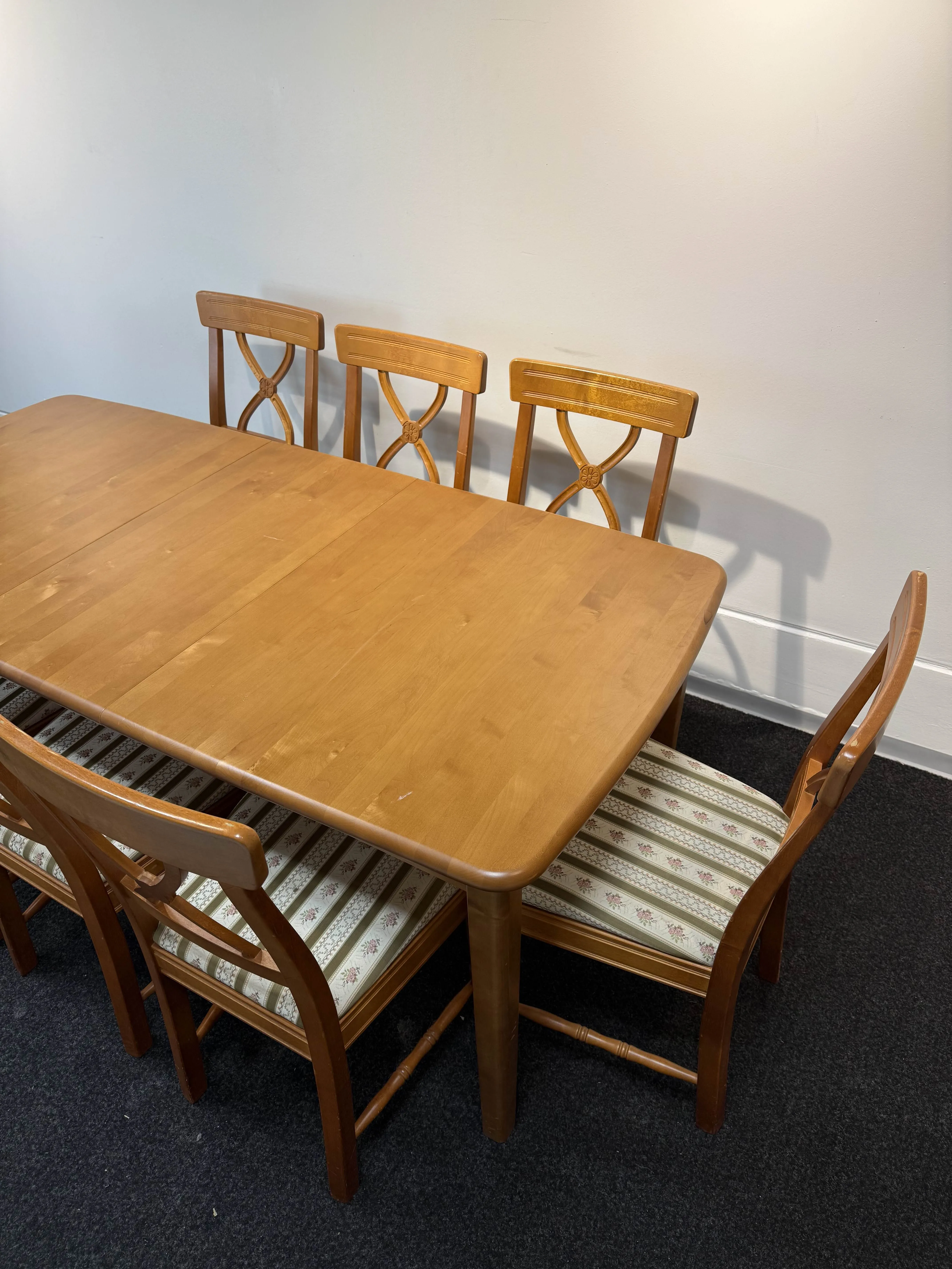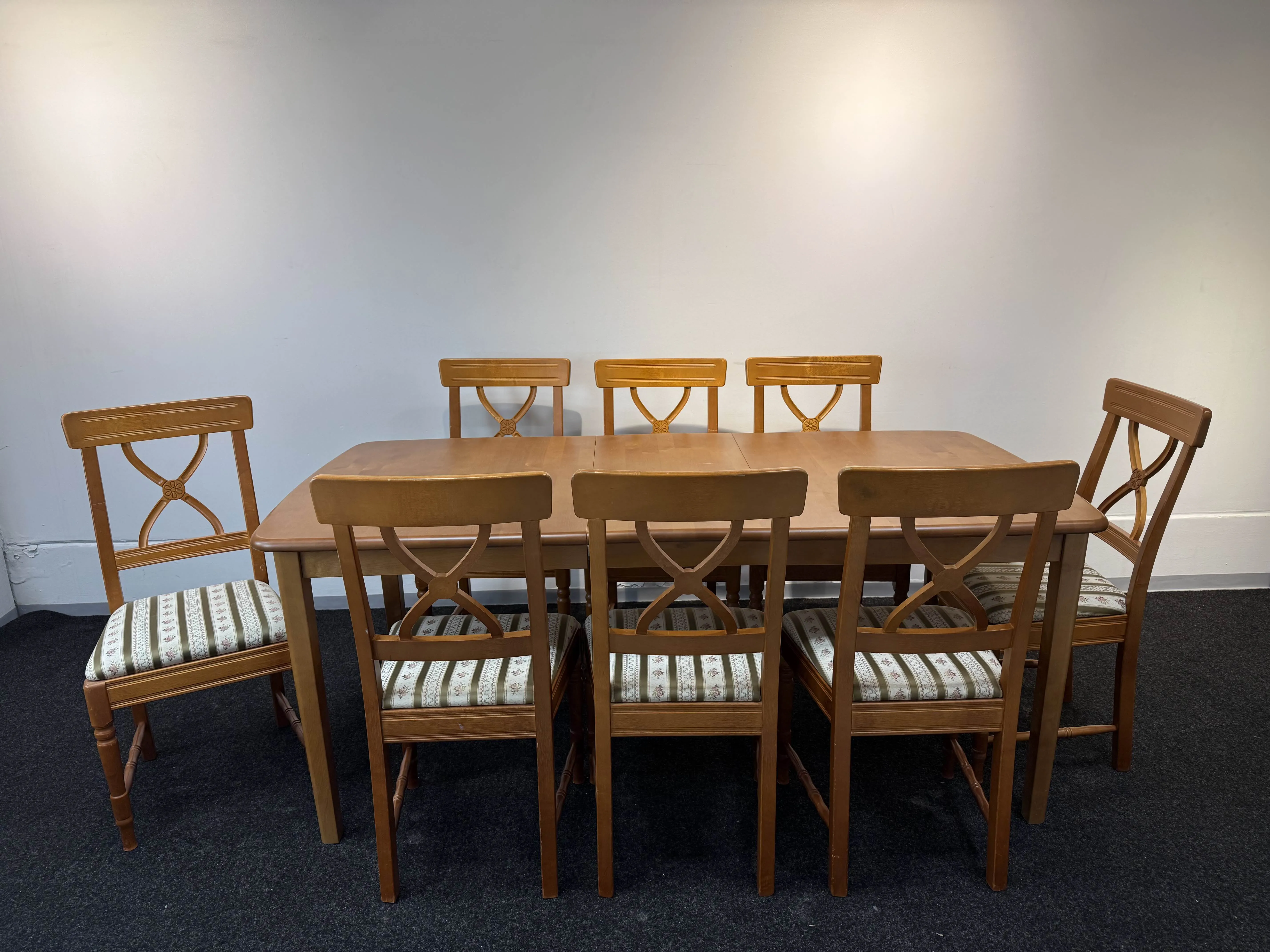 102. Jurvan Tyylikaluste, ruokailuryhmä, 8 tuolia ja jatkettava pöytä