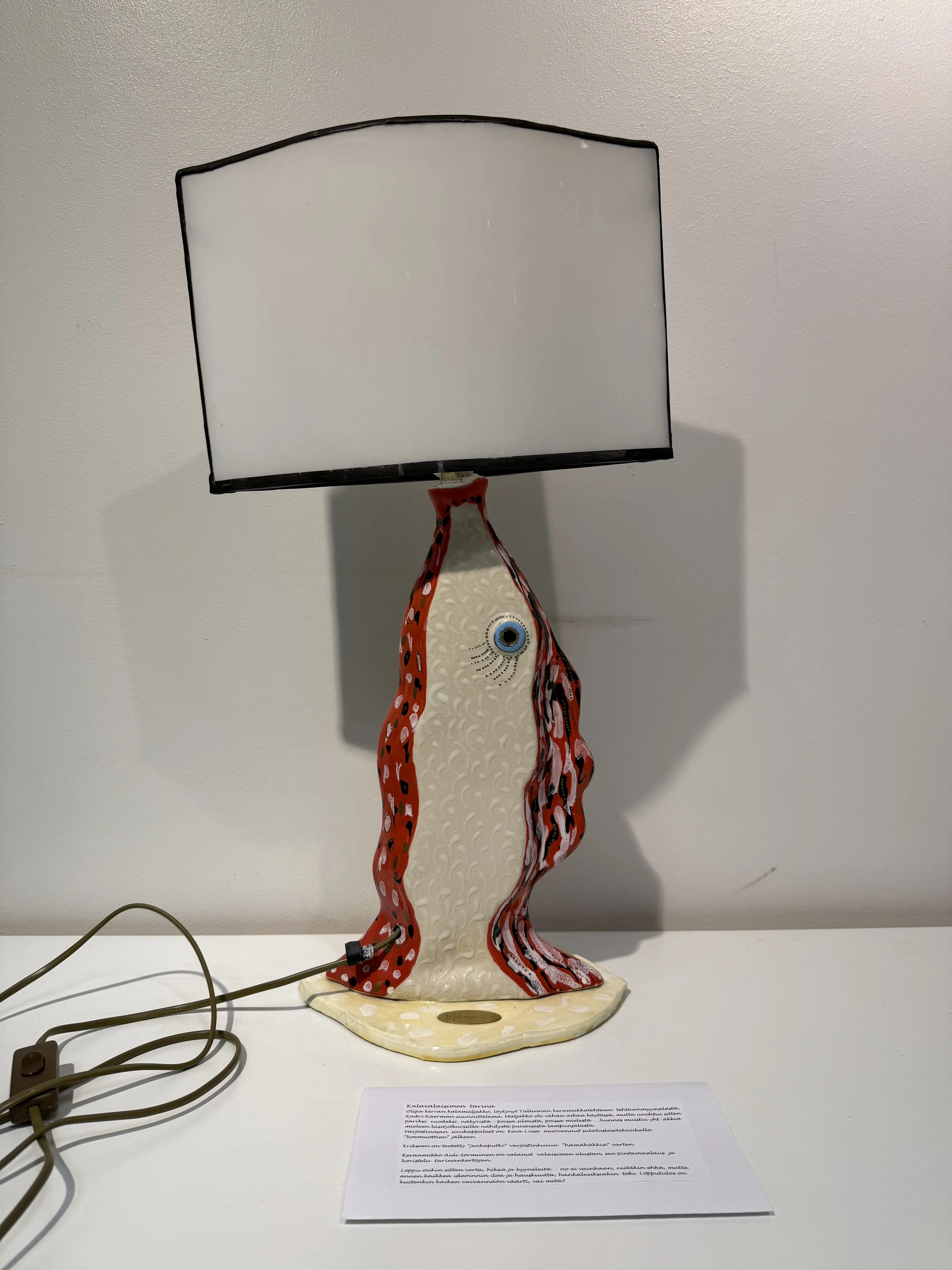 Kalavalaisimen tarina luettavissa kuvassa näkyvästä lapusta.