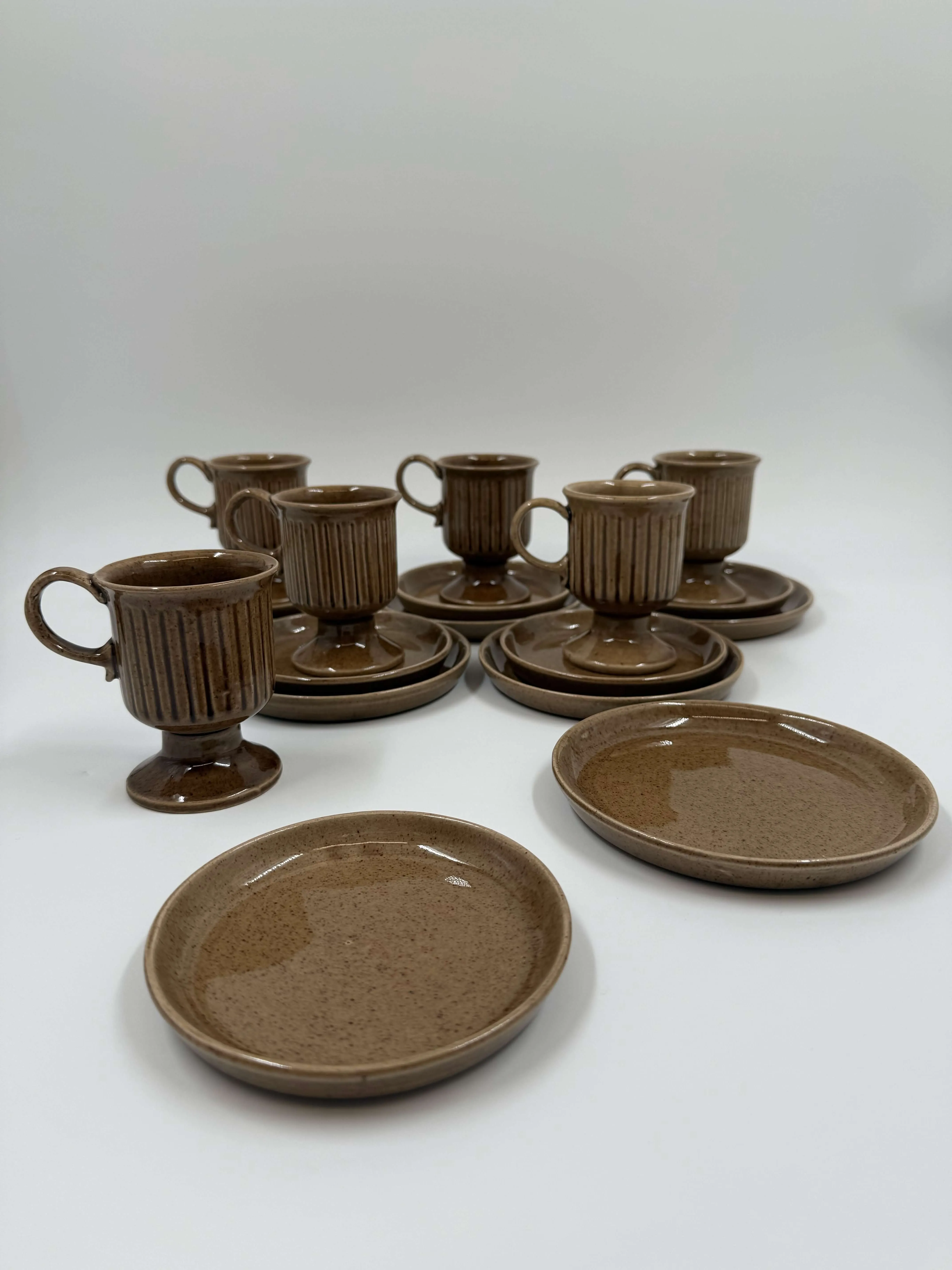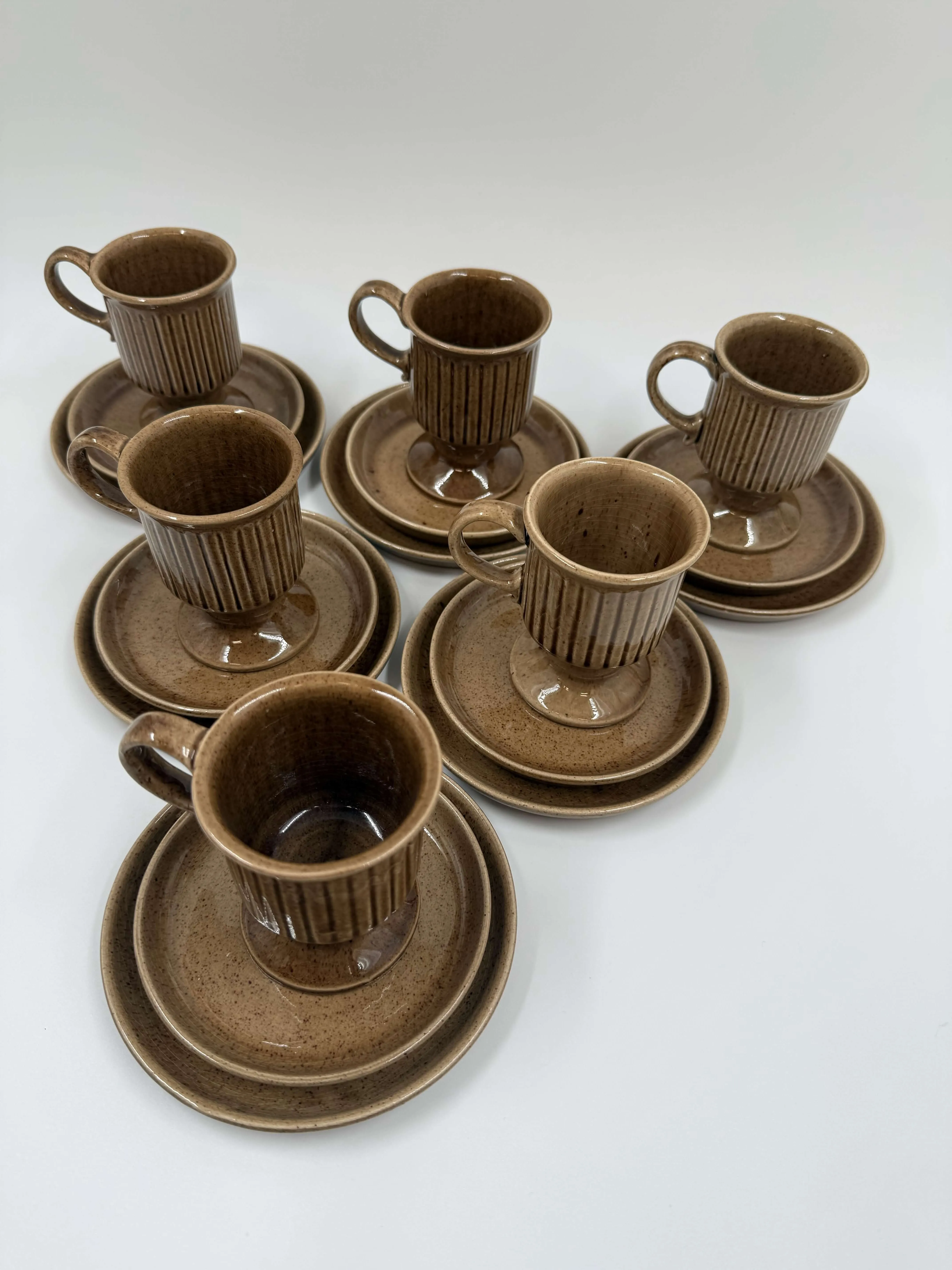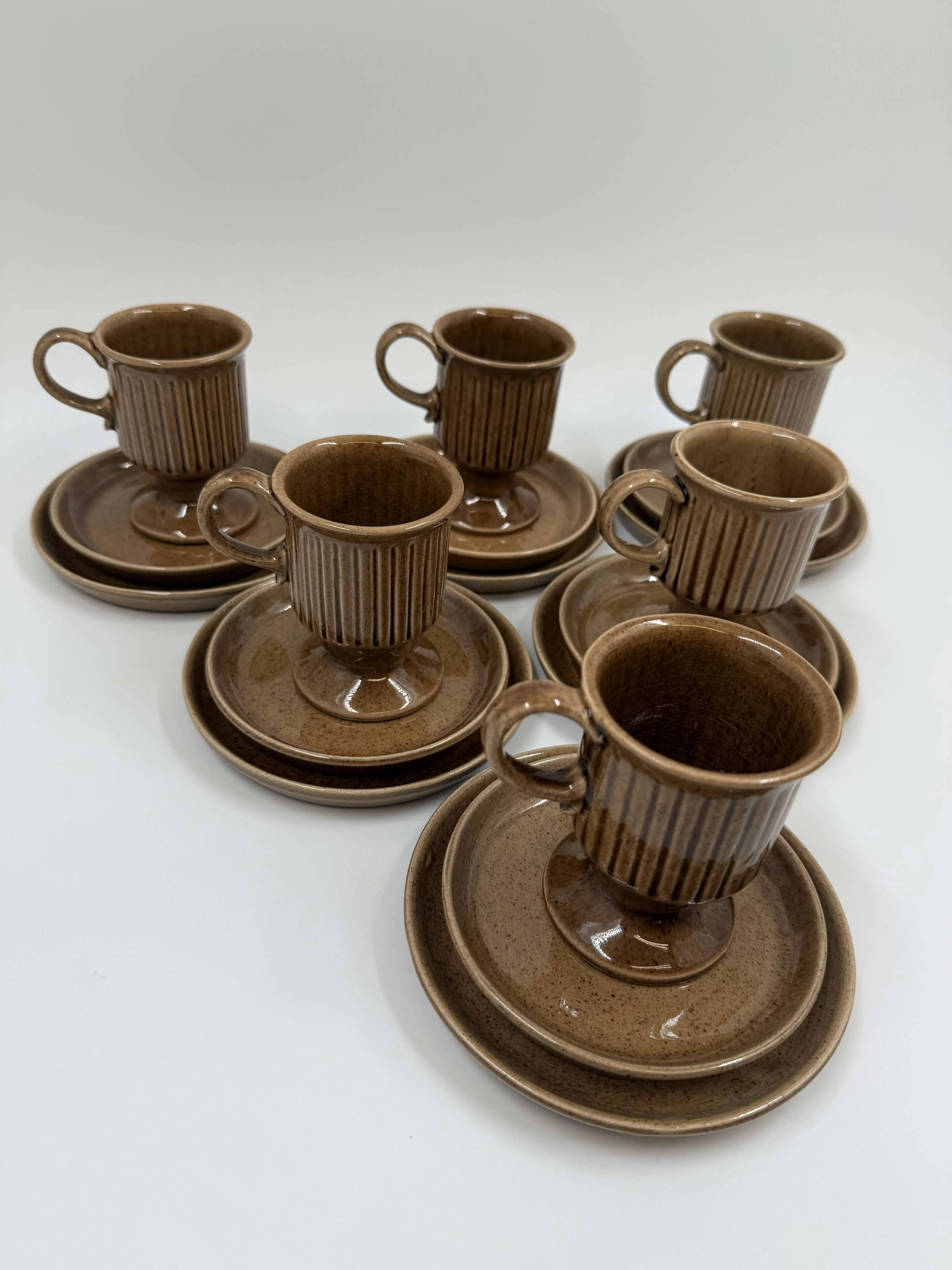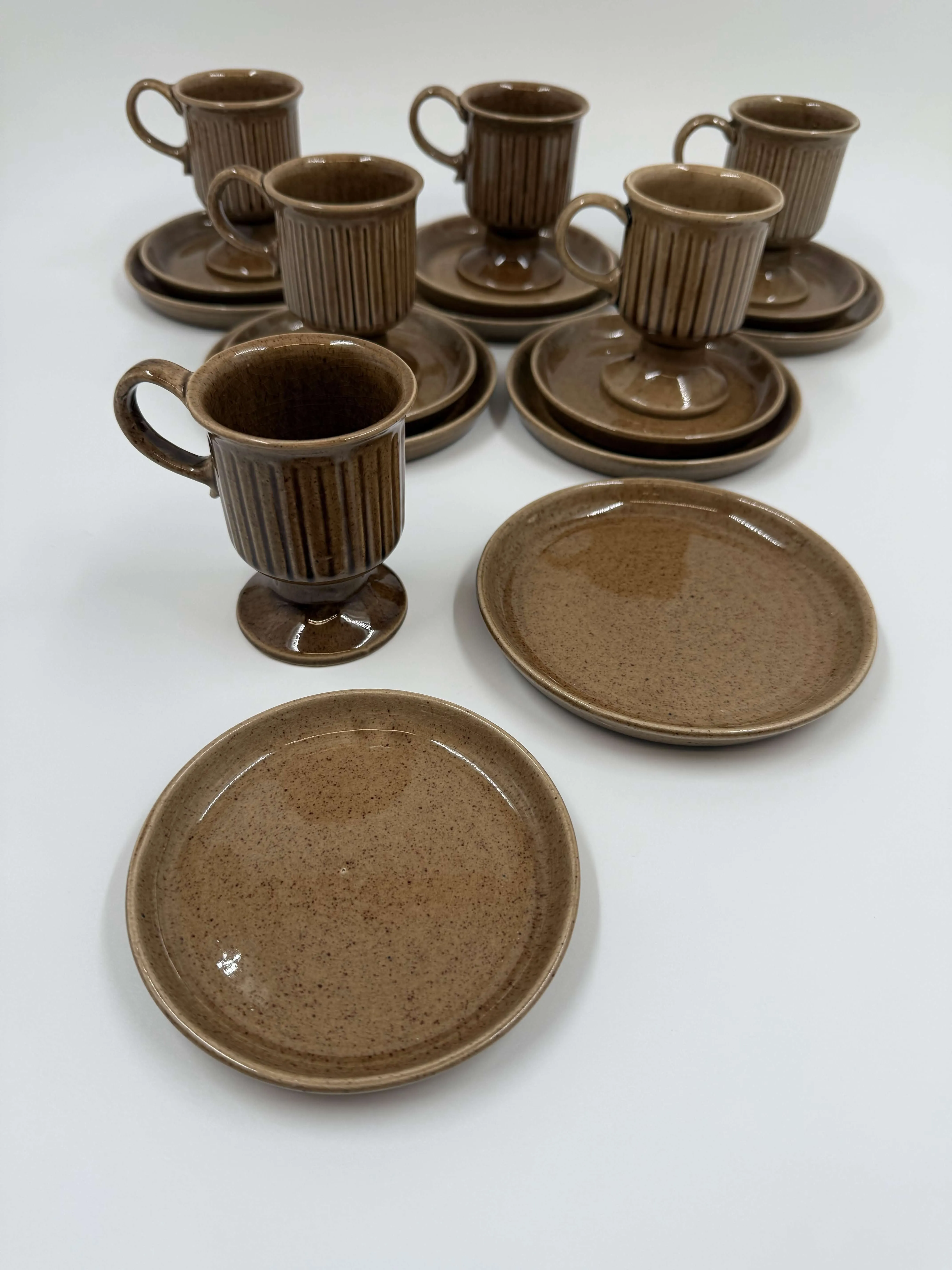 6 kuppia, 6 tassia, 6 pullalautasta.
