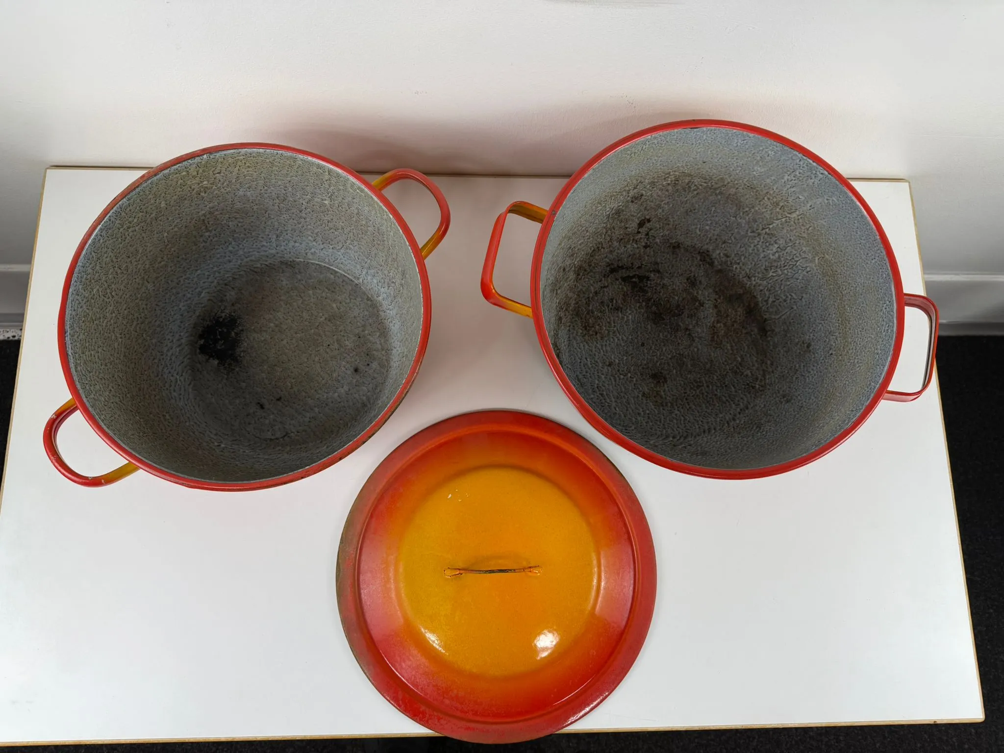 Pienemmän korkeus 16 cm ja halkaisija 31 cm.